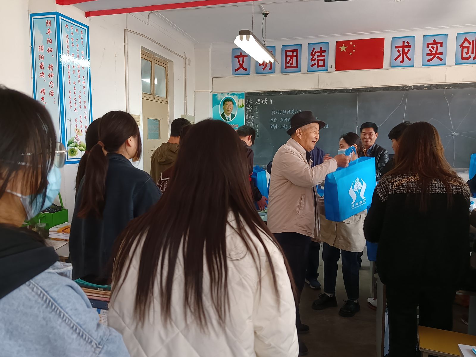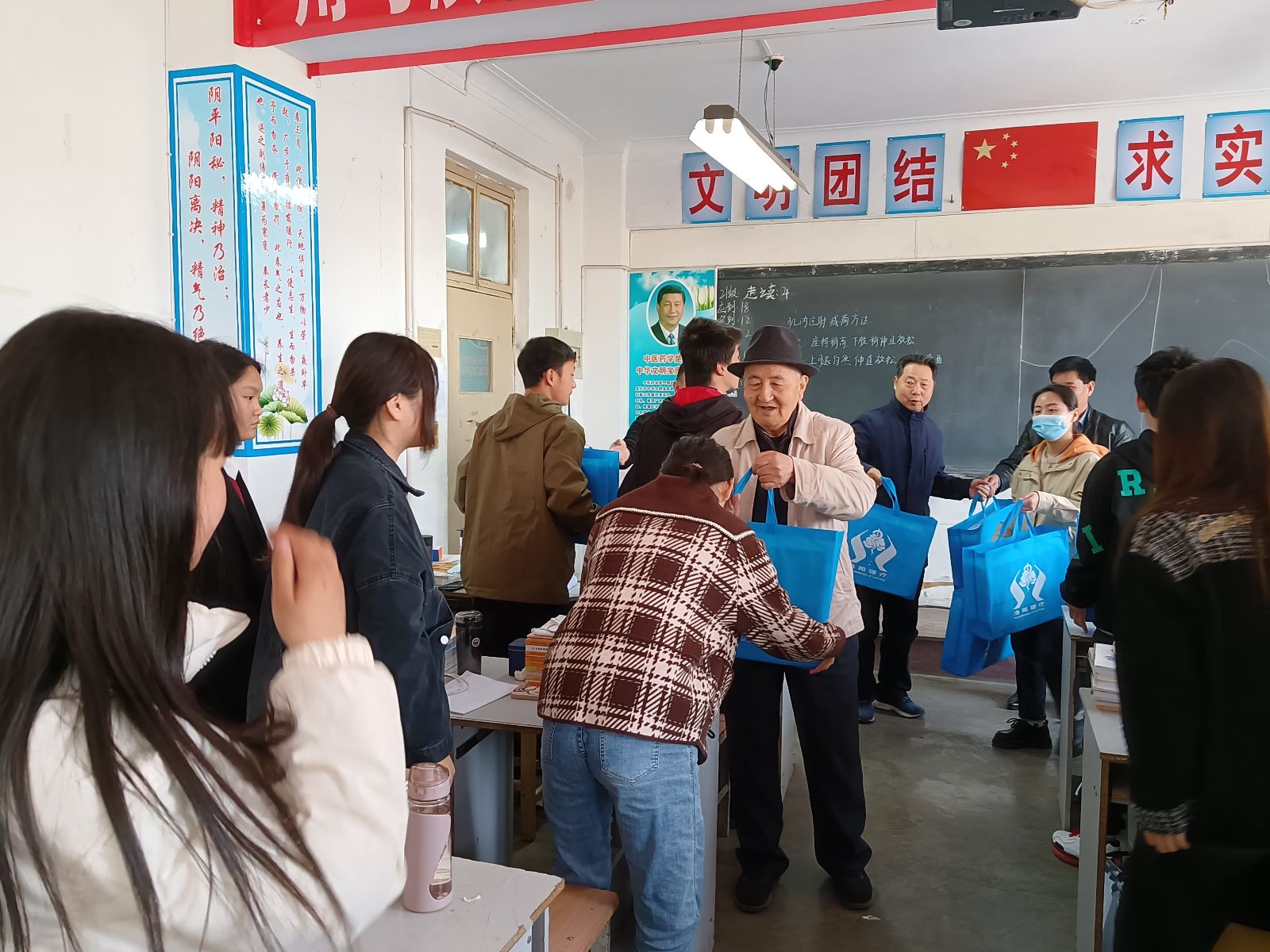 校长给同学们发放实训用品